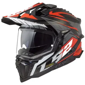 LS2 Mx701 Explorer - Perfekt adventurehjälm för långa rutter och alla underlag. HPFC-skal för en perfekt balans mellan komfort och säkerhet. Stora ventilationsöppningar på toppen och sidorna för utmärkt ventilation. Justerbar och avtagbar skärm. Brett anti-repvisir förberett för anti-dimsystemet, Pinlock Max Vision och invändigt solskydd.