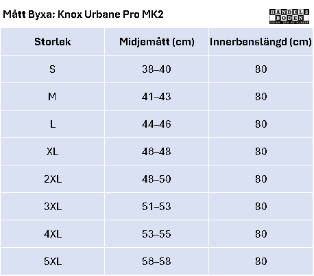 Urbane Pro-byxan är en lätt, mycket andningsaktiv, slittålig stretchbyxa gjord i samma höga tekniska och designstandard som skyddströ- jan Urbane Pro. Byxan är CE-godkänd enligt klass AA vilket är en fantastisk prestation eftersom det här är den klass som normalt nås av kraftiga textil- eller skinnbyxor. Fickor på framsidan samt diskret, smart blixtlåsficka för extra förvaring. Diskret placerade paneler i mesh för att ge maximalt luftflöde. Fantastisk stretch gör dessa till det mest bekväma paret sommarbyxor någonsin. Försedda med Knox mycket smidiga skydd MICRO-LOCK vid knä och höfter vilka enkelt kan tas ur för tvätt av plagget. Certifierad enligt CE-kraven EN17092 klass AA.