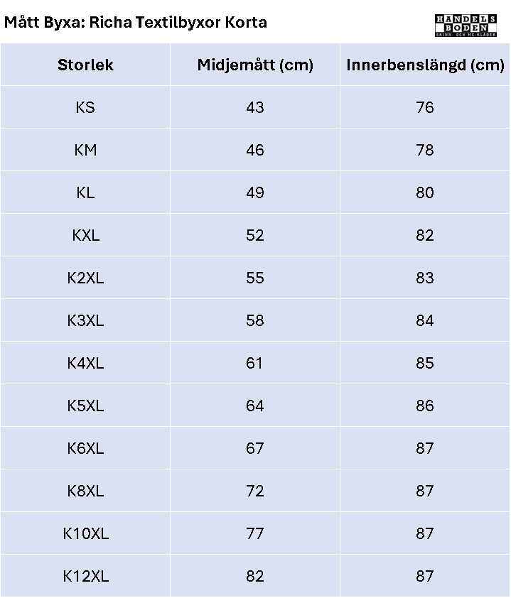 Storlekar: Kort S - Kort 6XL