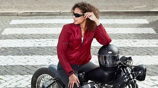 Fler och fler av våra kunder är kvinnor som har egen hoj och kör själva. Vi har gott om plagg i damstorlekar, så du kan lugnt vända dig till oss för att åka snyggt och säkert.